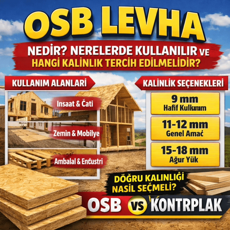 22 Ara Blog OSB Levha Nedir? Nerelerde Kullanılır ve Hangi Kalınlık Tercih Edilmelidir? Aralık 22, 2025 By caneraykul 0 comments OSB levha (Oriented Strand Board), ahşap yongaların belirli yönlerde preslenmesiyle üretilen, dayanı... Devamını Okuyun...