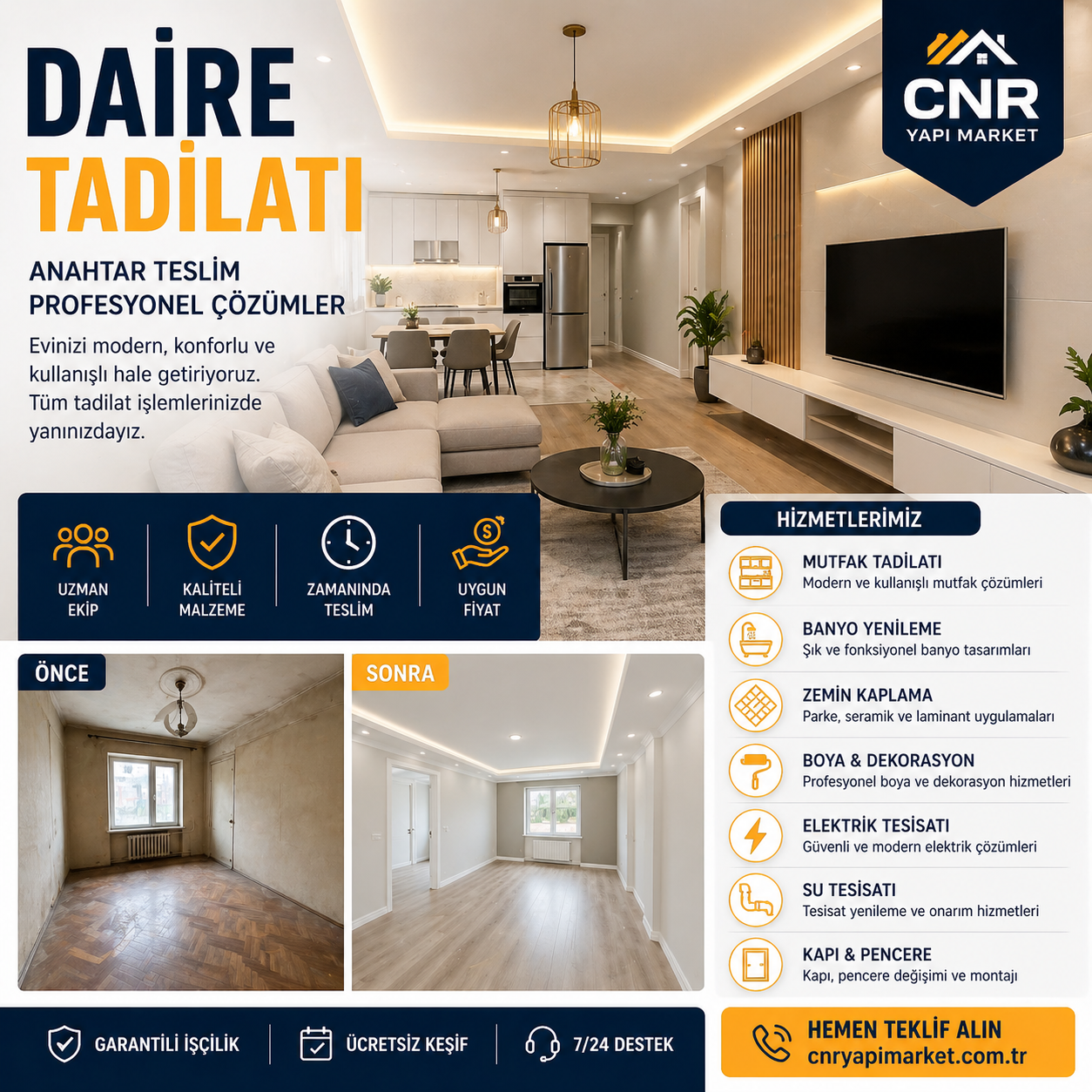 👉 cnryapimarket.com.tr üzerinden daire tadilatı hizmetlerimiz hakkında detaylı bilgi alabilir ve size özel teklif oluşturabilirsiniz.